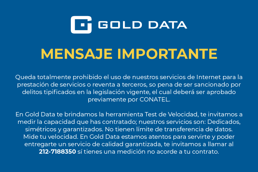 Gold Data se distingue por su rápida entrega de servicios, flexibilidad en precios y un trato directo, sin burocracia, que permite resolver cualquier tema de forma ágil. Más que un proveedor, es un aliado estratégico y un amigo, con una calidad de servicio simplemente inigualable. Confiamos ahora nuestra red a su infraestructura con toda la tranquilidad y confianza. Gracias.